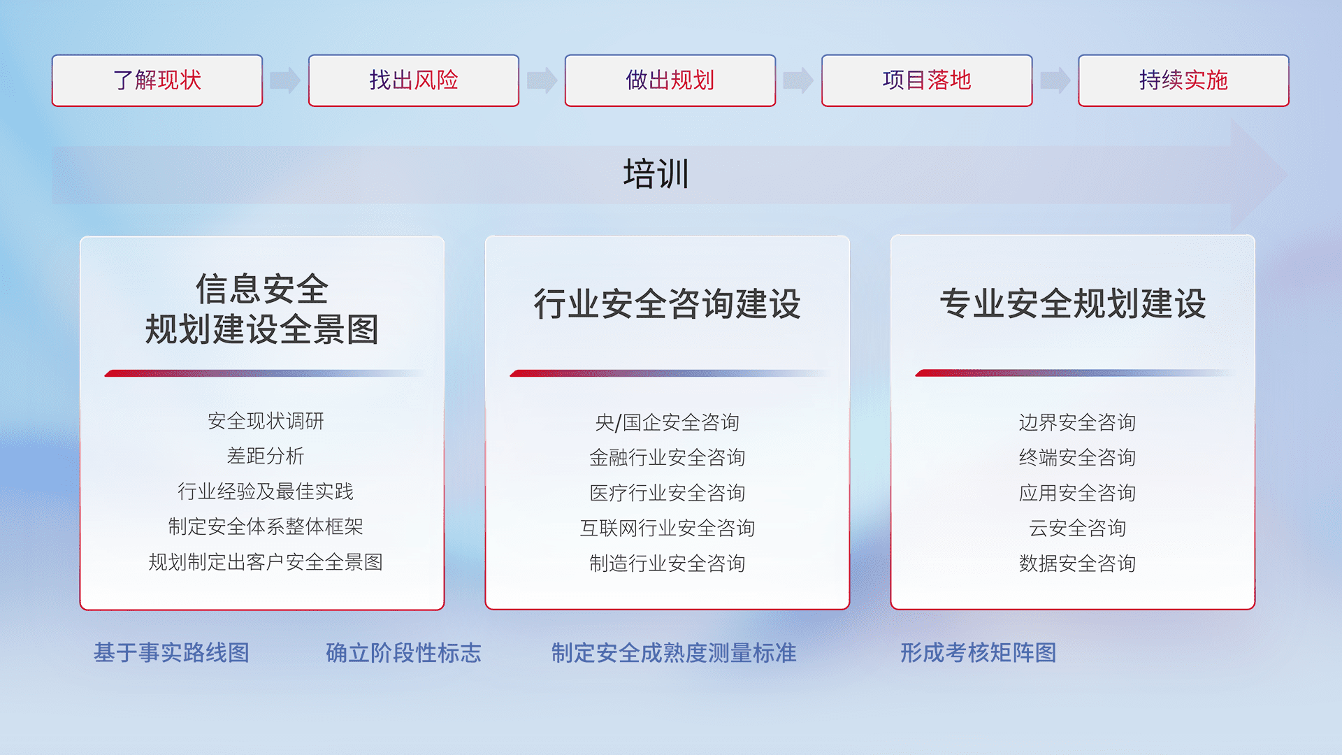 通过专业的法律咨询解读、、、合规架构体现、、差异化解决方案、、、测试实施支持等服务,,,为客户量身打造等保合规体系。。。